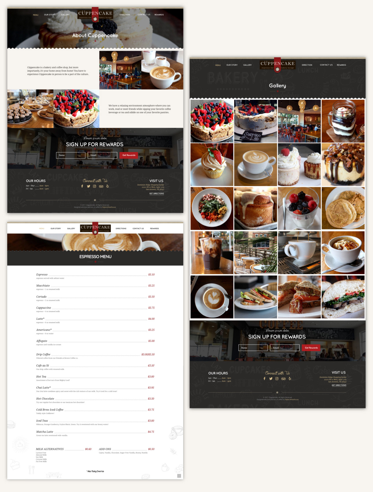 Expresso Bar and Bakery in the Dominion Ridge. Created website design screens and layout. Developed website with Wordpress.