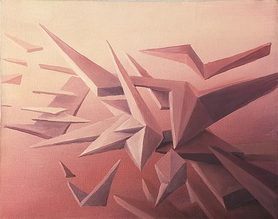 Fun with floating abstract geometric shapes. Oils on canvas, 14"x11"