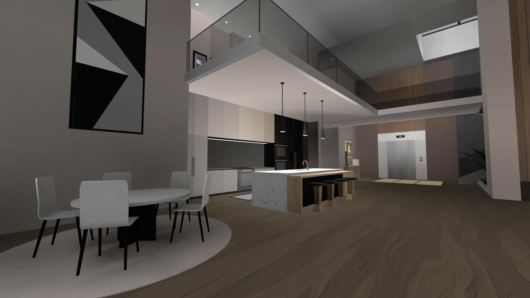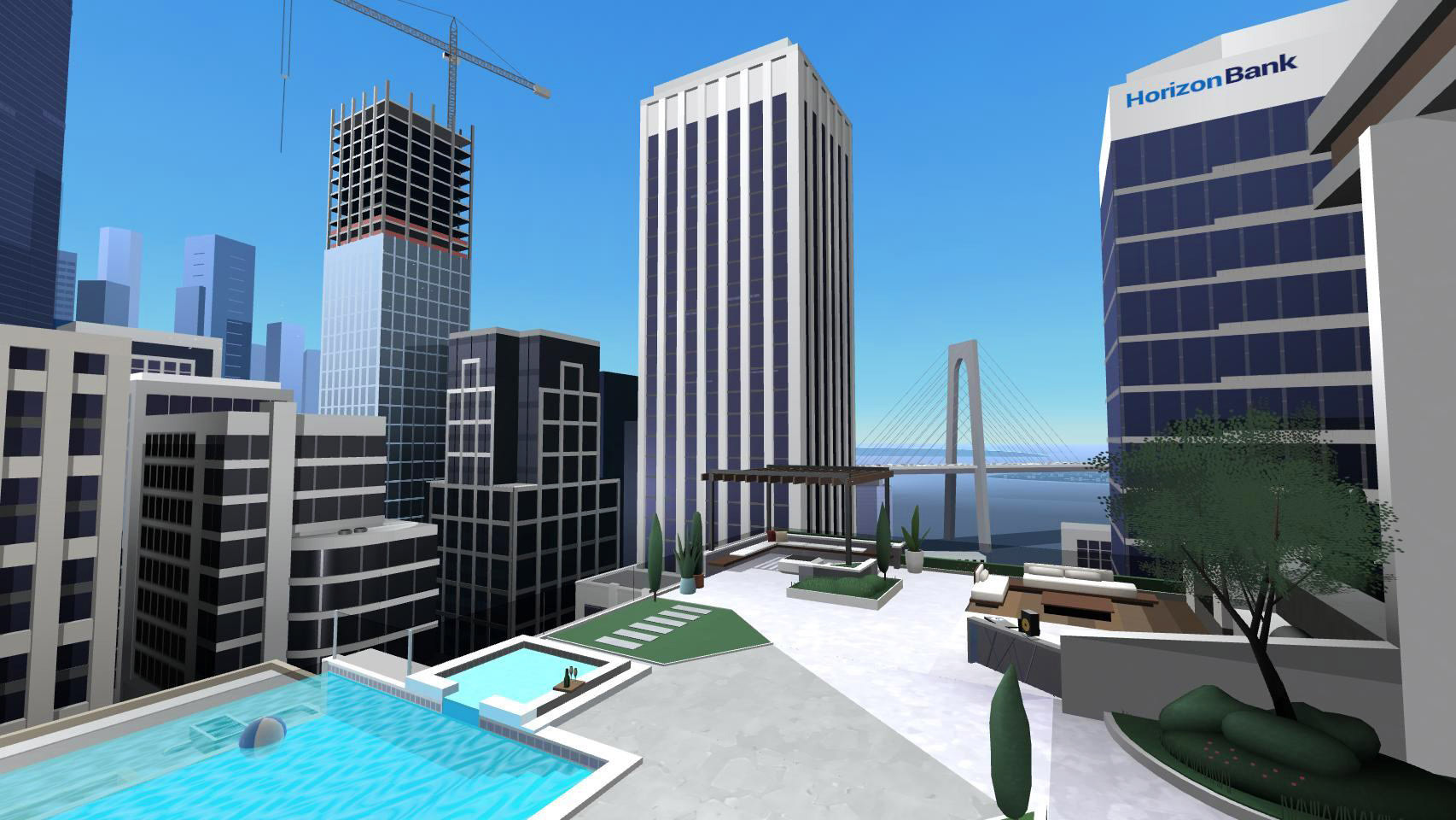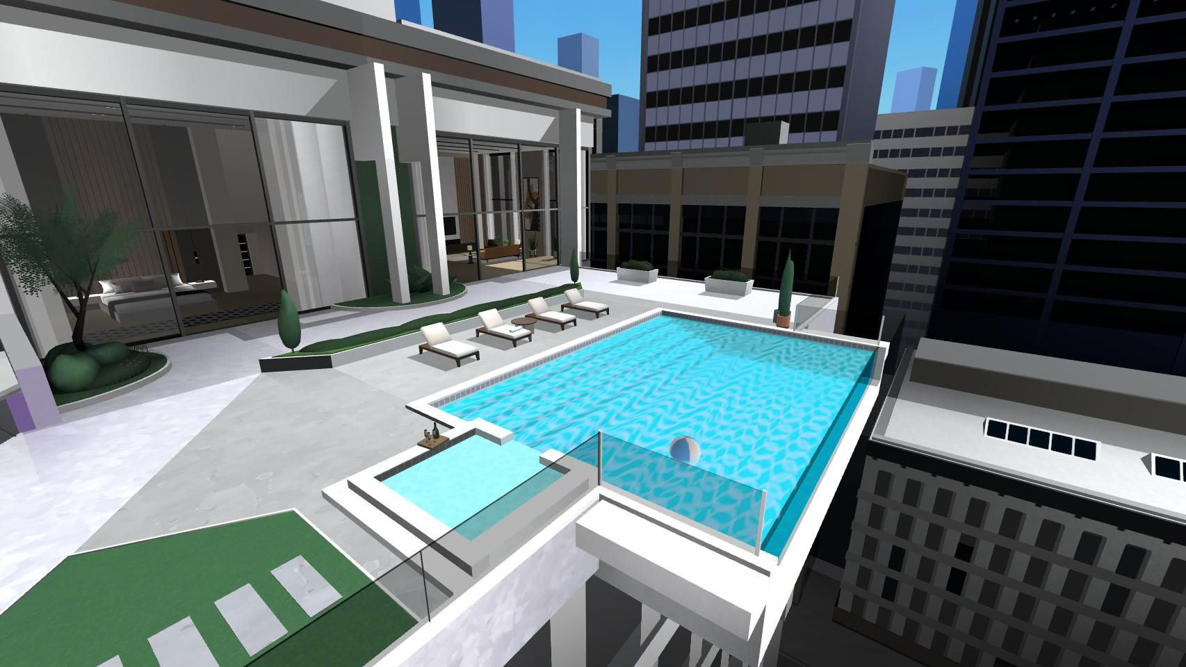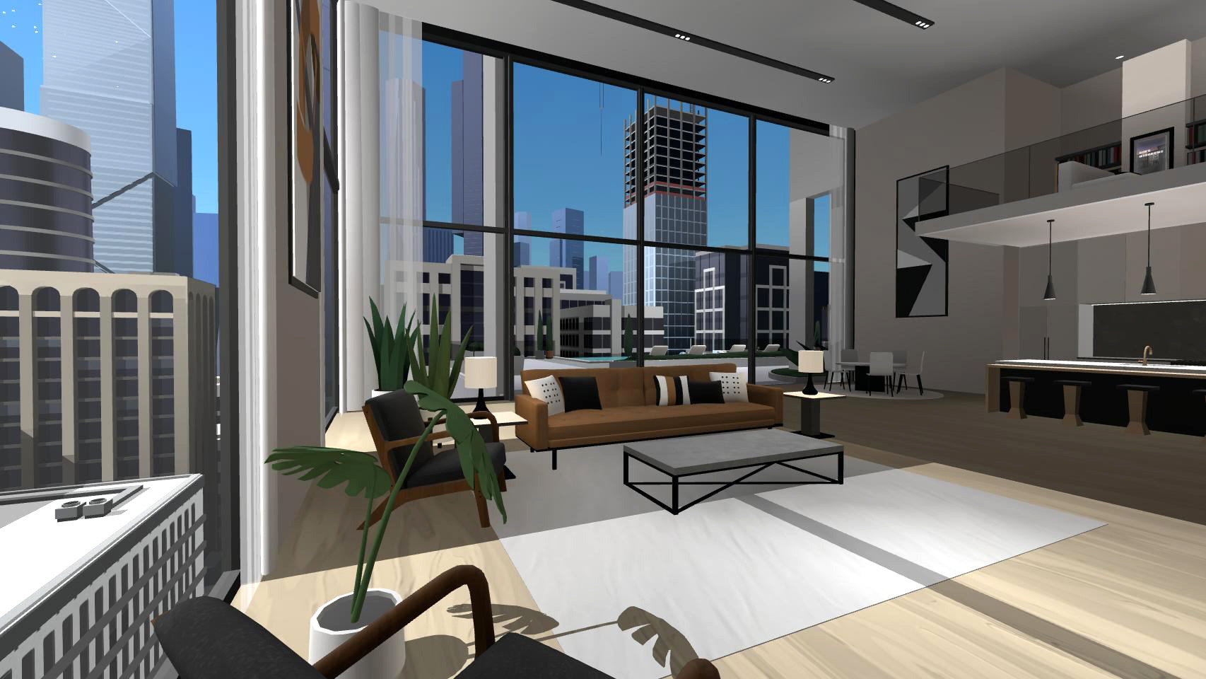 A rebuild of my Downtown Cityscape 30" x 40" oil painting in Horizon Worlds. My attempt to create "walk inside painting" world for VR users. Kitchen, infinity pool, modern design living room with shadow illusion.